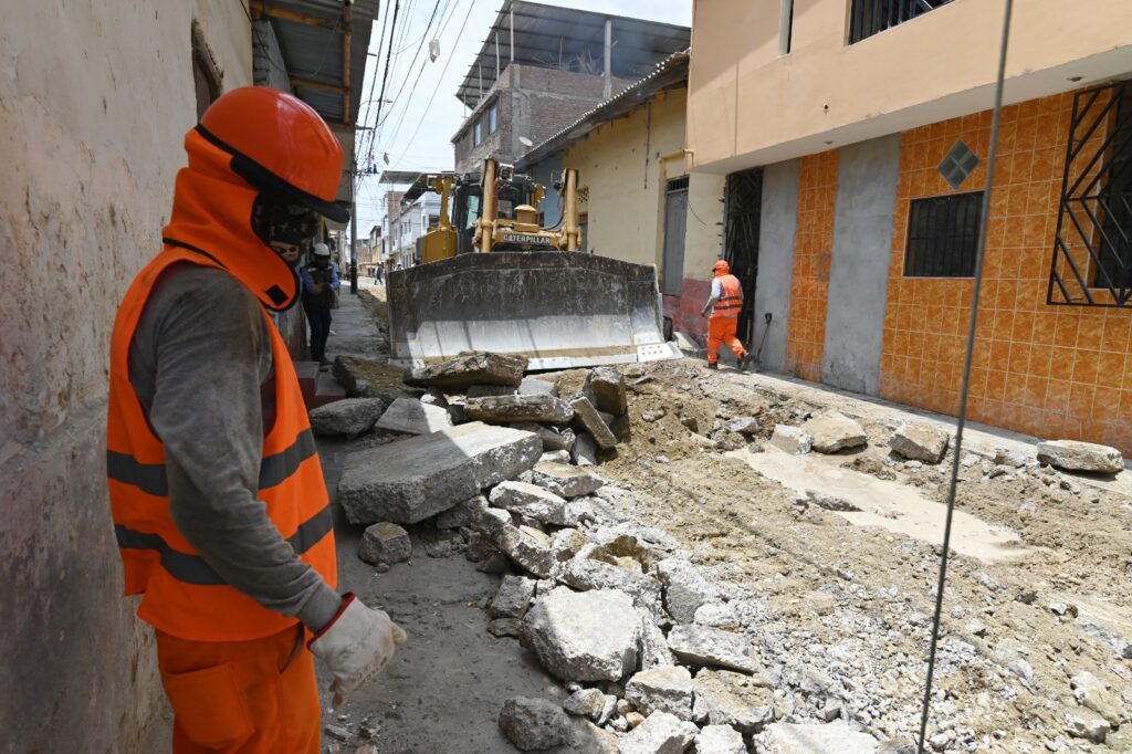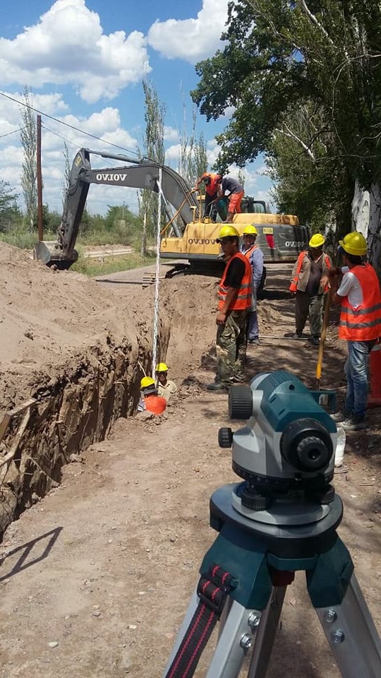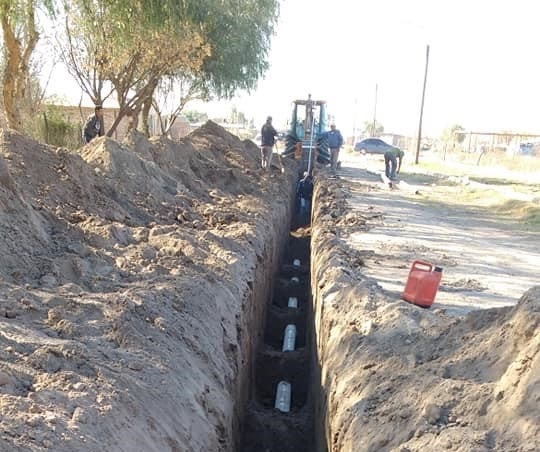 Excavación de zanjas para instalación de servicios de agua y desagüe.